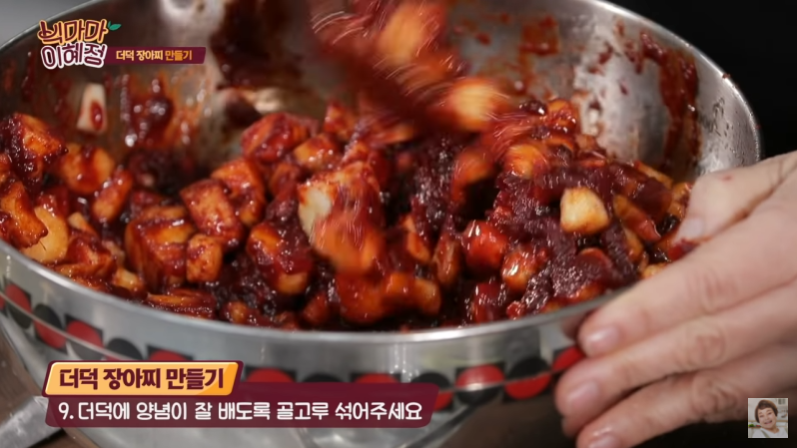 9. 더덕에 양념이 잘 배도록 골고루 섞어준다.