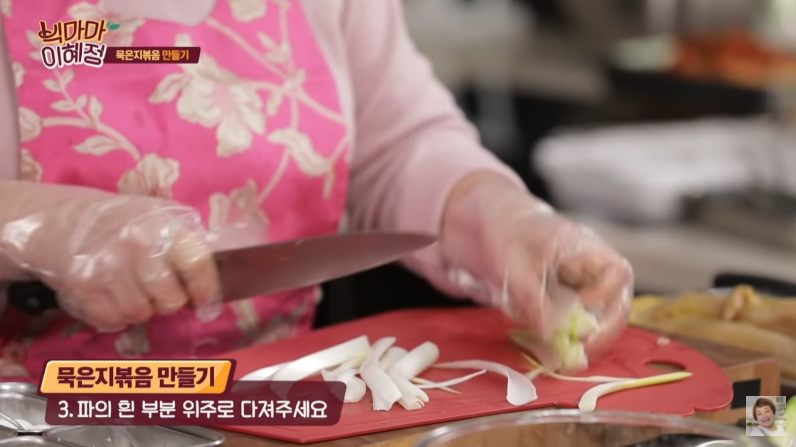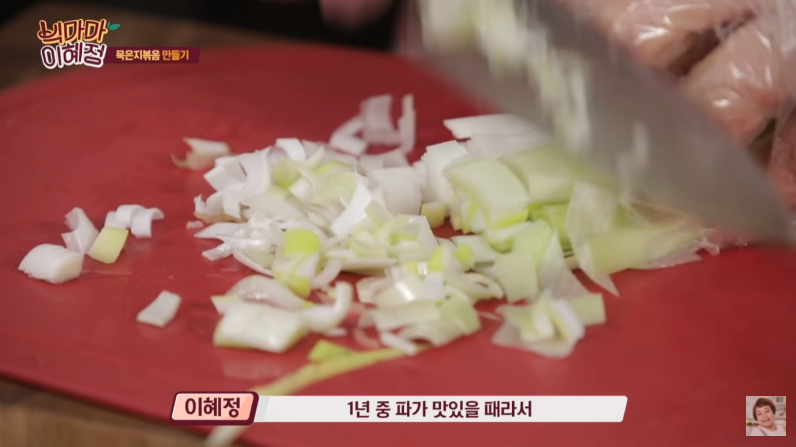 3. 파의 흰 부분 위주로 다져준다.