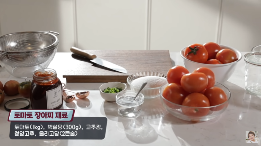 토마토(1kg), 백설탕(300g), 고추장, 청양고추, 올리고당(2큰술)
