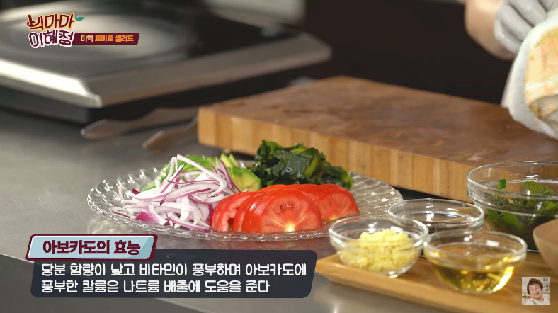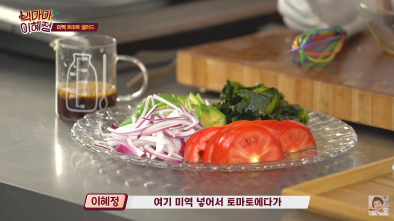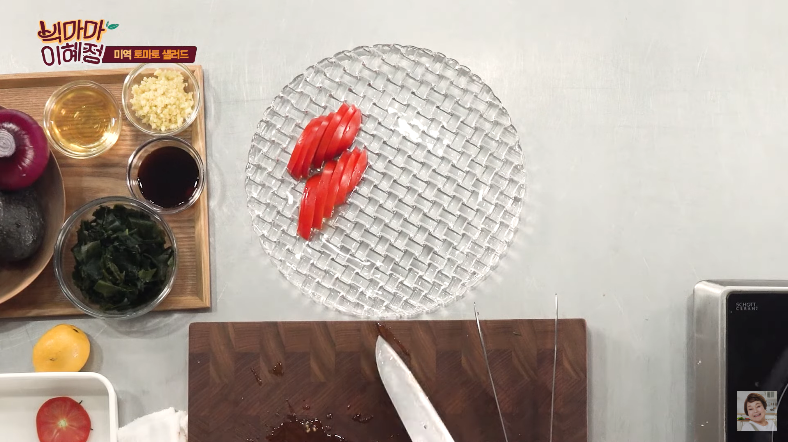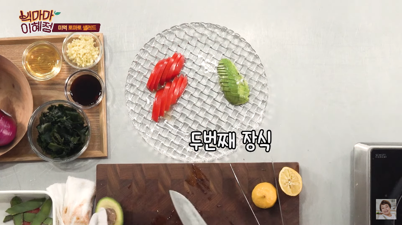 미역, 토마토, 아보카도, 적양파, 간 생강, 간장, 현미식초