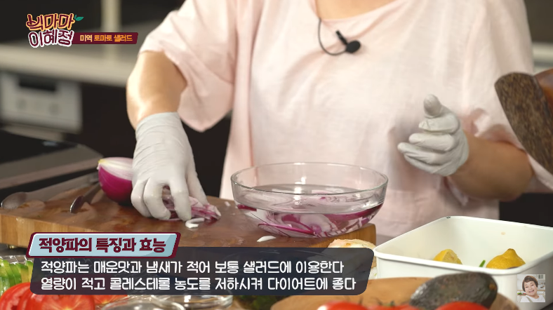 4. 적양파를 물에 넣고 매운 기를 빼준 다음 물기를 제거해 주세요.